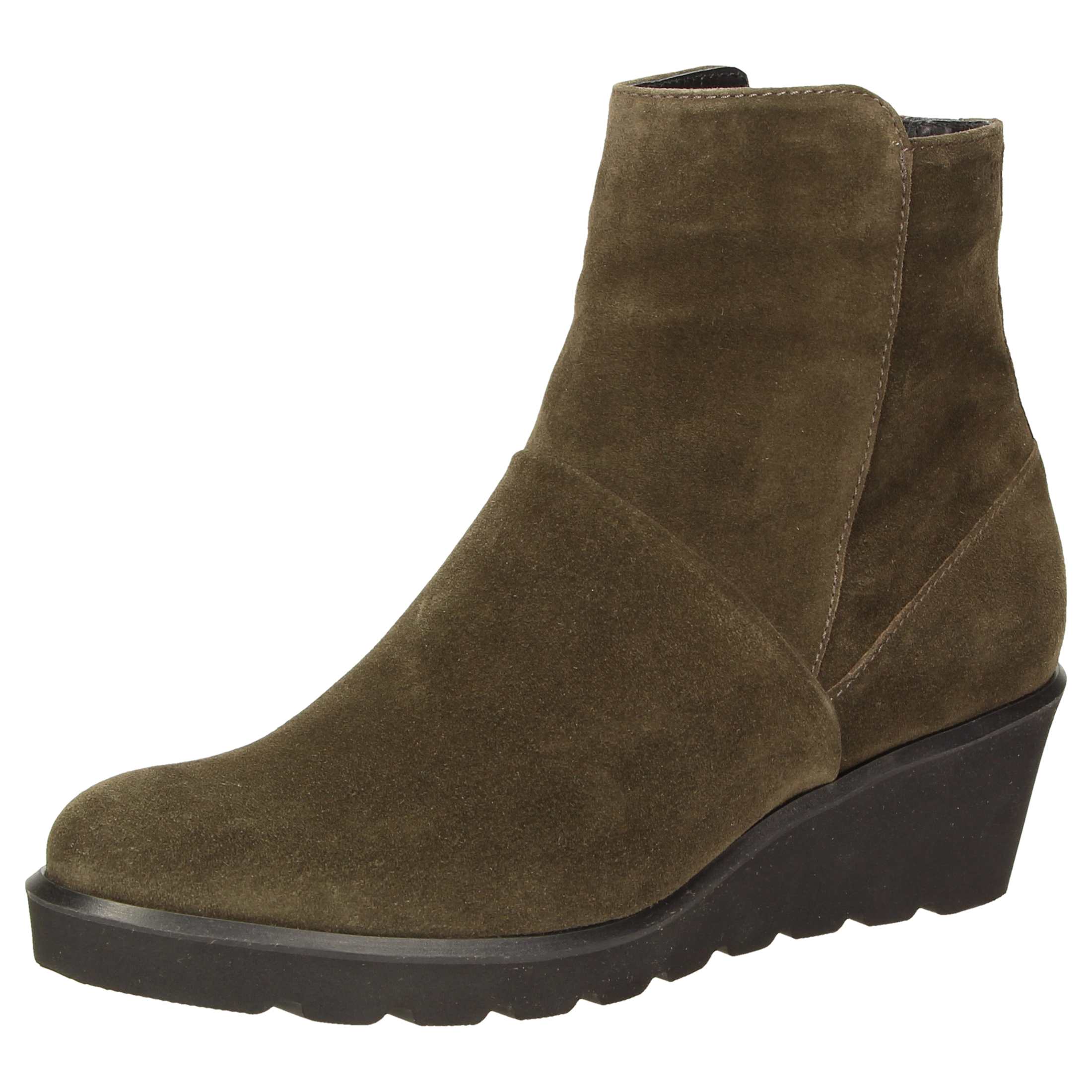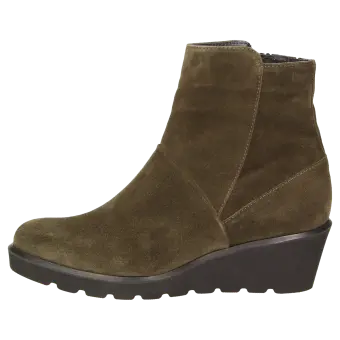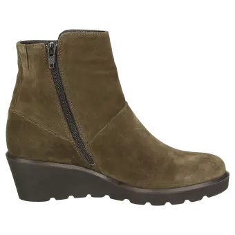 Casual ankle boots with zip fastening made of fine calfskin suede with a soft, lightweight rubber wedge sole and a 45 mm heel. Lined with a microfibre textile and featuring a leather insole which can be swapped with own inlays. The comfortable G-width and lightweight sole make these booties the ideal companions.