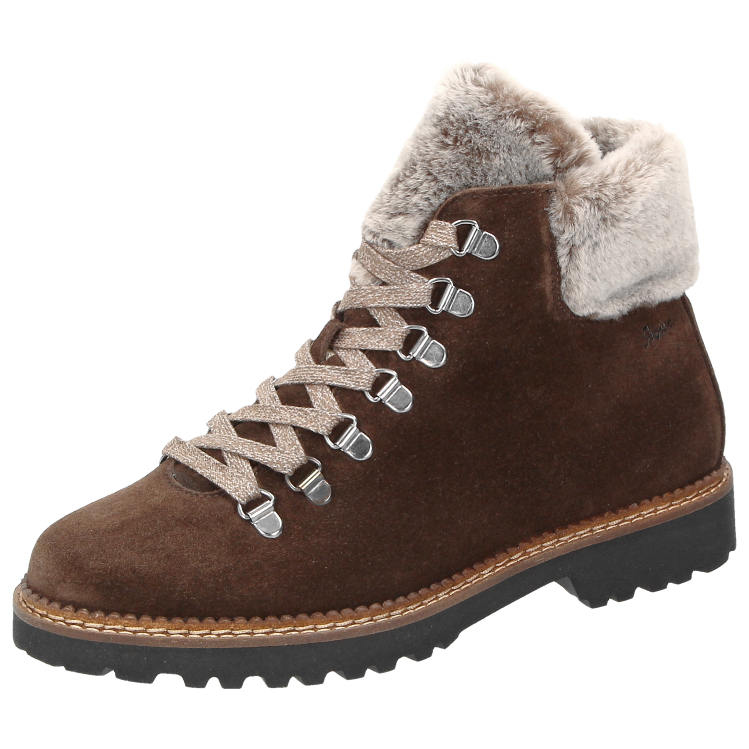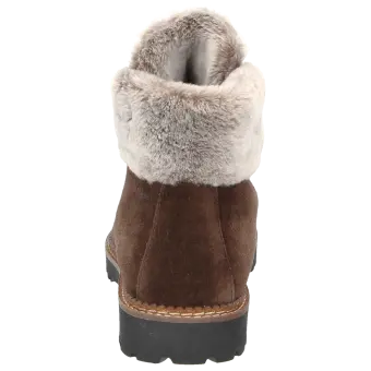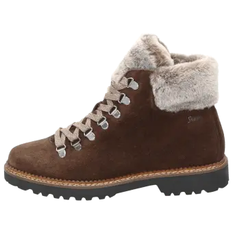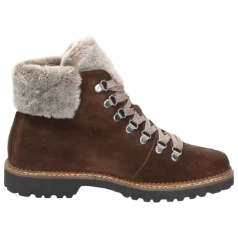 Traditional lace-up boots made from supple suede with a lambskin section on the heel. The lightweight sole and the warm lining make these shoes the ideal choice on cold days.