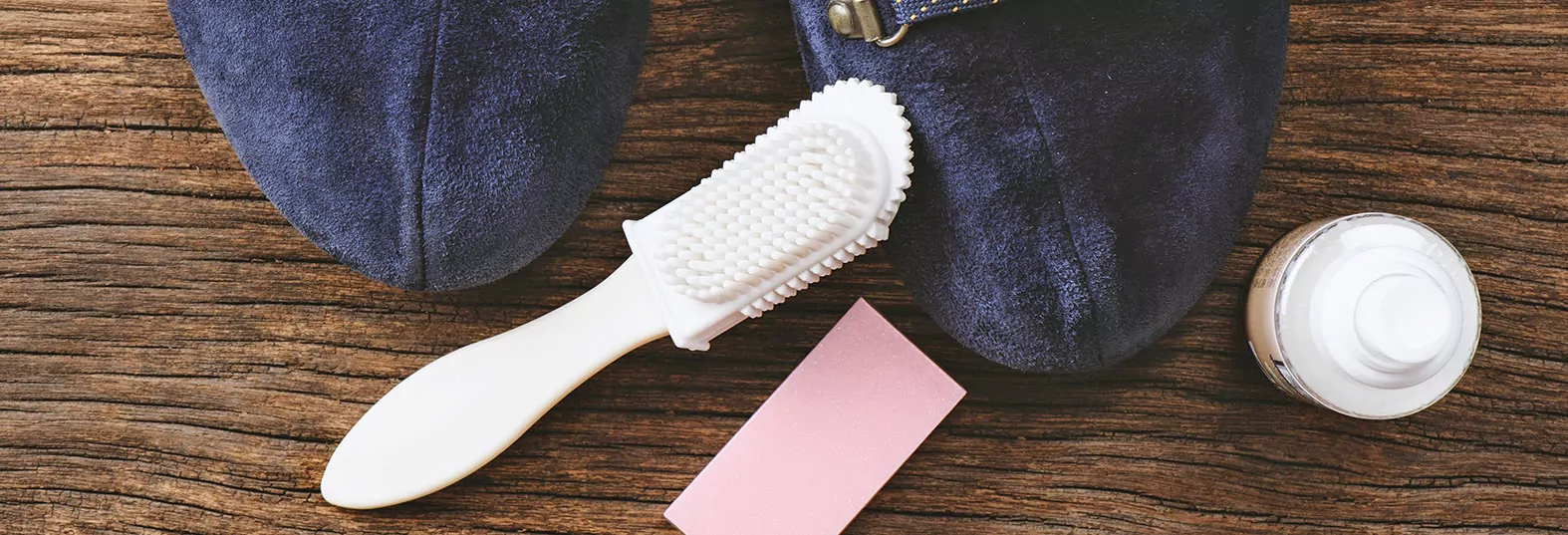 Caring for a shoe always starts with the cleaning process. Special suede brushes are suited to cleaning suede leather. These usually feature one side with a stiff brush (natural bristles partly on the outside and metal bristles on the inside), which can be used to clean dirt, and a soft rubber brush on the other side, which is used to finish off the process. After this, it is time to impregnate the shoes.