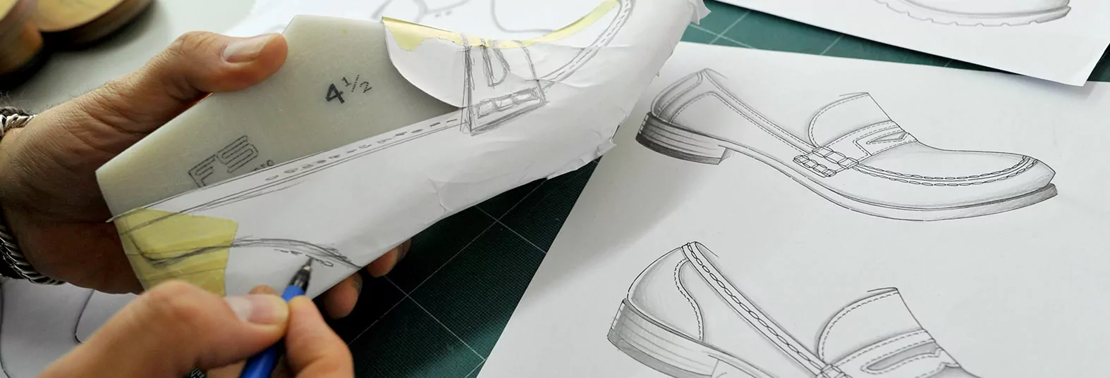 Even before the material or the colour of a shoe is chosen, the initial concepts for the design and the lasts must be developed. The model development department is responsible for all of these steps.