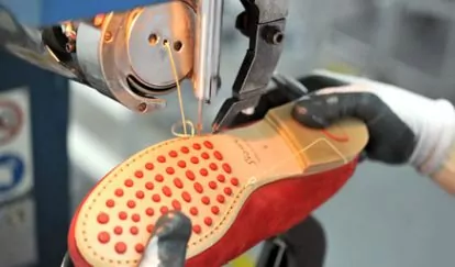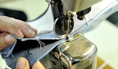 The sewing department receives the (cut-out) individual components of the the upper shoe from the stamping department. This is done manually using a sewing machine.