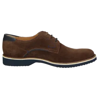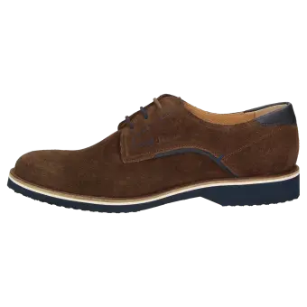 Timeless men's lace-up shoe made of fine calfskin in a comfortable G-width fitting featuring a smooth vamp. The fully padded, soft insole has a leather/microfibre inner lining. Blue lightweight rubber sole with a 10 mm heel and embossed edging in contrasting white. The rubber sole cushions each step and provides a comfortable tread - a shoe for those who are always on the go. This shoe comes with a second pair of shoelaces in a contrasting colour.