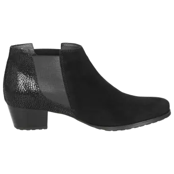 Élégante bottine en cuir souple superbe, avec un large empiècement stretch pour un ajustement optimal. La coupe de très grande qualité et la hauteur de talon bien pensée assurent un confort parfait.