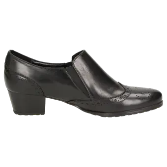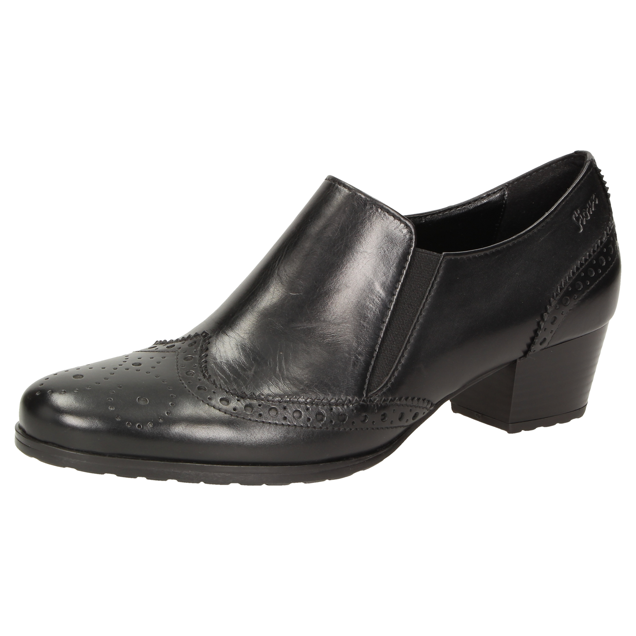 Escarpin classique en cuir de veau souple, très mode avec son bout golf et son talon bottier. Les élastiques latéraux garantissent un chaussant parfait et un enfilage facile. Avec sa semelle discrètement crantée, ce modèle se porte toute l'année.