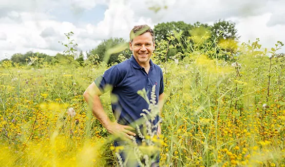 Die mittlere Fotoreihe ist direkt aus der Blumenwiese heraus aufgenommen, auf dem mittleren Bild sichtbar stolz Lewin Berner, unser geschäftsführender Gesellschafter.