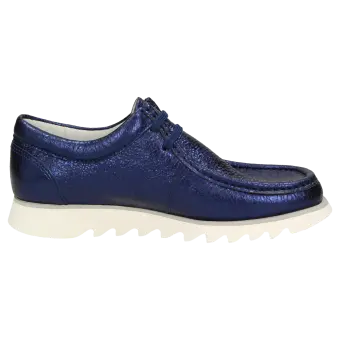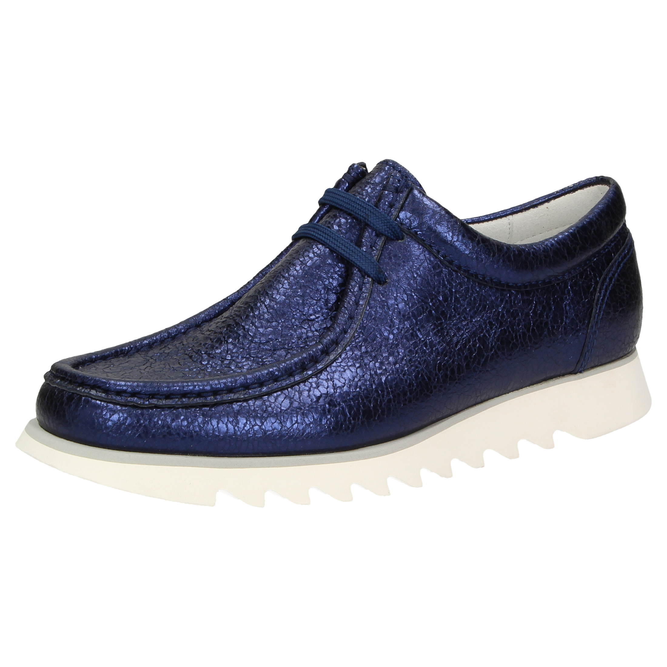 Modischer Damenschuh aus der Grashopper-Kollektion, der durch besondere Leichtigkeit, eine bequeme Schuhweite F und besondere modische Akzente überzeugt. Der Mokassin beeindruckt zudem mit hervorragendem Komfort durch besondere Zehenfreiheit und einem herausnehmbaren Wechselfußbett, wodurch der Damenschuh perfekt für Einlagen geeignet ist. Diese Sneaker-Alternative ist durch weiches, gecrushtes Ziegenleder im Metallic-Look ein echtes Highlight. Die Sneaker-Leichtgummisohle mit Haifischzahn-Profil ermöglicht ein unnachahmlich leichtes und bequemes Tragegefühl.