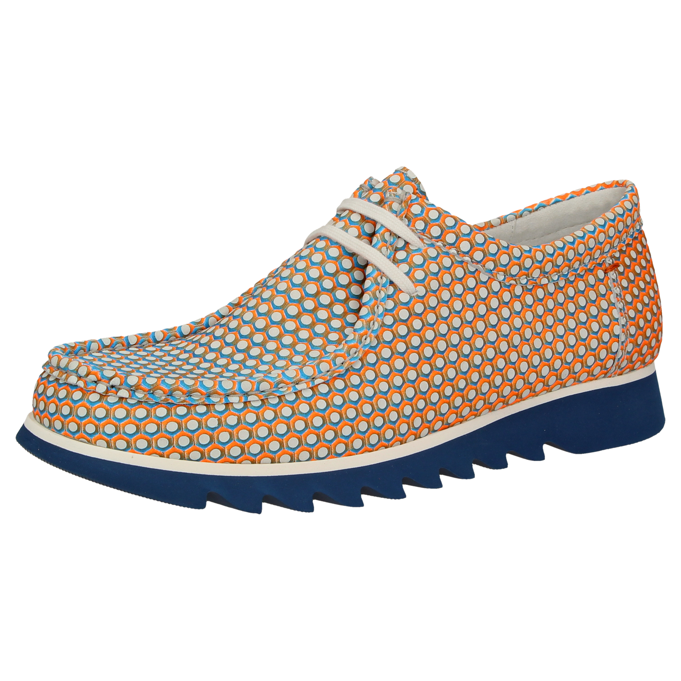 Leichter Herren-Grashopper-Mokassin aus Kalbleder mit zweifarbiger grafischer Optik. Durchgehend gefüttert mit Funktions-Textil-Stoff - perfekt auch zum Barfußtragen. Weich gepolsterte Kalbleder-Decksohle zum Herausnehmen und Austauschen durch die eigene Einlage. Weiße EVA-Leichtgummisohle mit Haifischzahn-Profil - dadurch erhält man ein angenehmes Laufgefühl mit Sneaker-Komfort eine sportive Optik. Passend dazu gibt es auch im Partnerlook einen Grashopper für Jungs!
