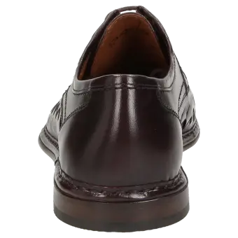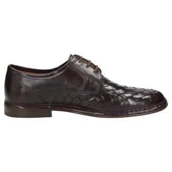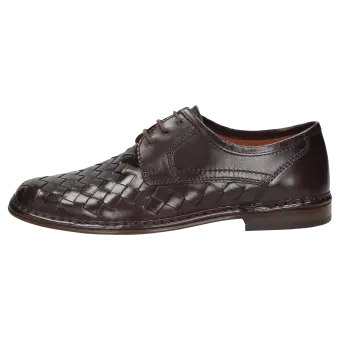 Heren-veterschoen van klassiek buffelleer, wijdte G, met de hand gestikte randnaad, gevoerde leren dekzool en volledig met leer gevoerd. Het zomerse vlechtmotief en de luchtdoorlatende leren zool zijn perfect voor de warme tijd van het jaar.