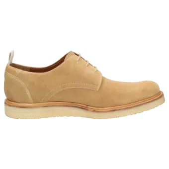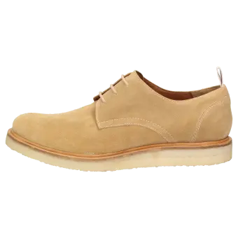Heren-veterschoen uit de serie APOLLO van Sioux, gemakkelijke G-wijdte, van fijn kalfssuède. Markant met echte crêpezool van natuurlijke caoutchouc en opgelegde leerrand. Comfortabel model met zacht gevoerd leren voetbed en leren voering. Exclusief in kleine serie gemaakt model!