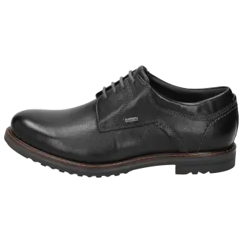 Sportief-klassieke heren-veterschoen in sportieve optiek met markante, geprofileerde rubberen loopzool in gemakkelijke H-wijdte. Waterdichte tex-membraan, warme voering en wisselvoetbed ronden de binnenuitvoering af.