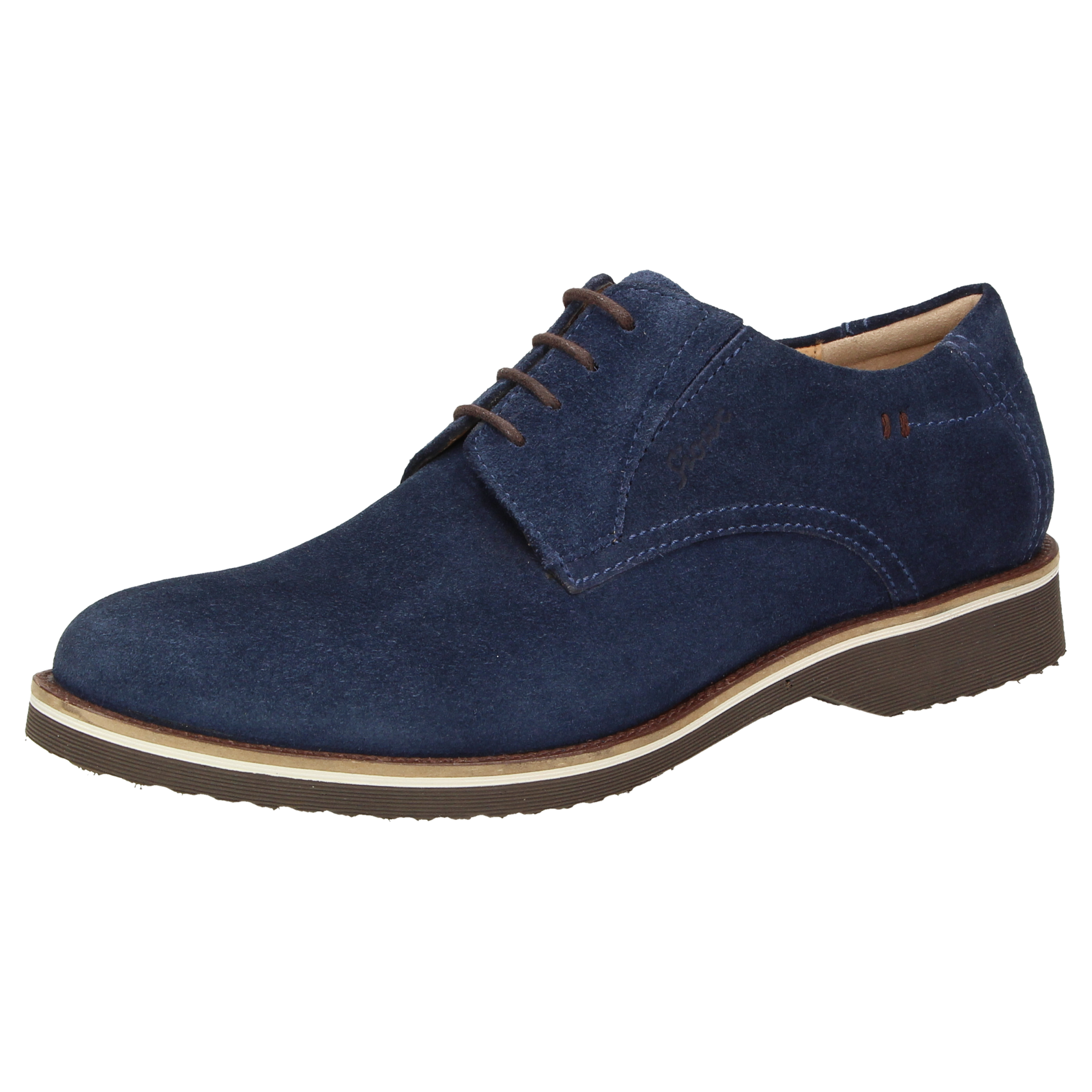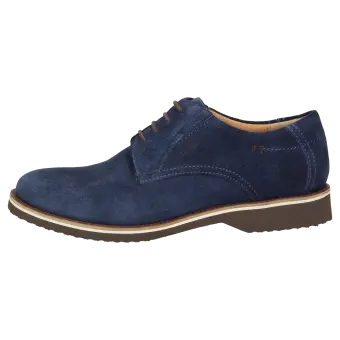Vlotte heren-veterschoen van sportief kalfssuède, H-wijdte, met zacht gevoerd en met microvezel bekleed wisselvoetbed, eenvoudig te vervangen door de eigen inlegzool. De lichte rubberzool die aangenaam dempt - een schoen voor mensen die veel moeten lopen.