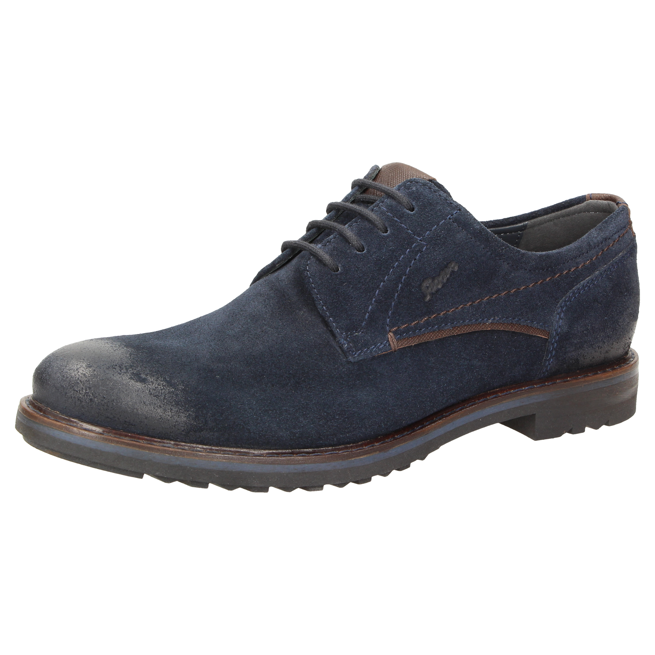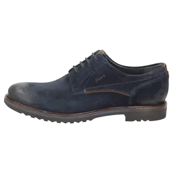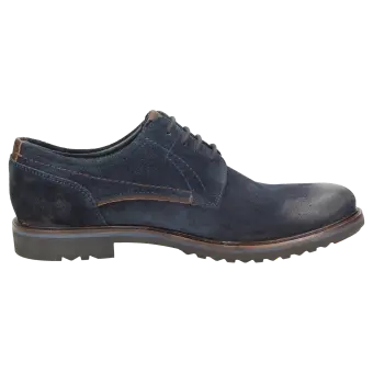 Sportieve heren-veterschoen van kalfssuède met een gecombineerde binnenvoering van textiel en leer. Met doorlopende, gevoerde en met kalfsleer beklede dekzool. De rubberzool met dwarsprofiel zorgt in herfst en winter voor uitstekende grip.