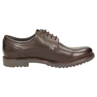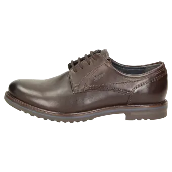 Sportieve heren-veterschoen van generfd kalfsleer met een gecombineerde binnenvoering van textiel en leer. Met doorlopende, gevoerde en met kalfsleer beklede dekzool. De rubberzool met dwarsprofiel zorgt in herfst en winter voor uitstekende grip.