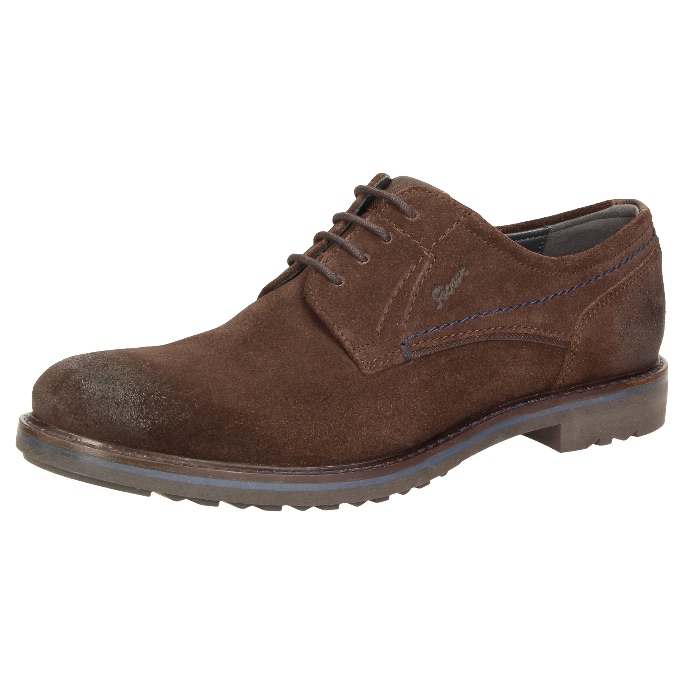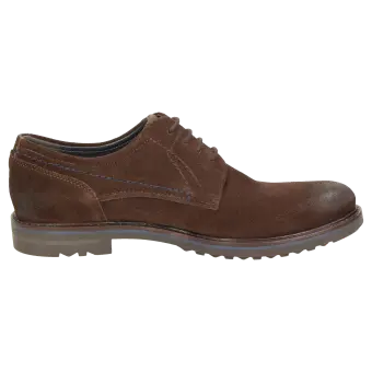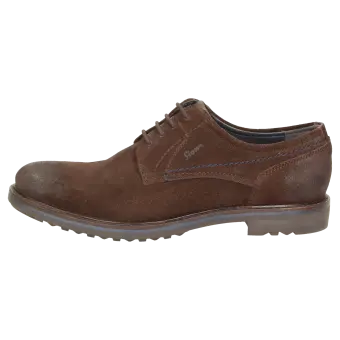 Sportieve heren-veterschoen van kalfssuède met een gecombineerde binnenvoering van textiel en leer. Met doorlopende, gevoerde en met kalfsleer beklede dekzool. De rubberzool met dwarsprofiel zorgt in herfst en winter voor uitstekende grip.