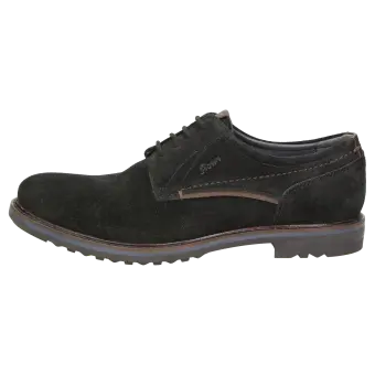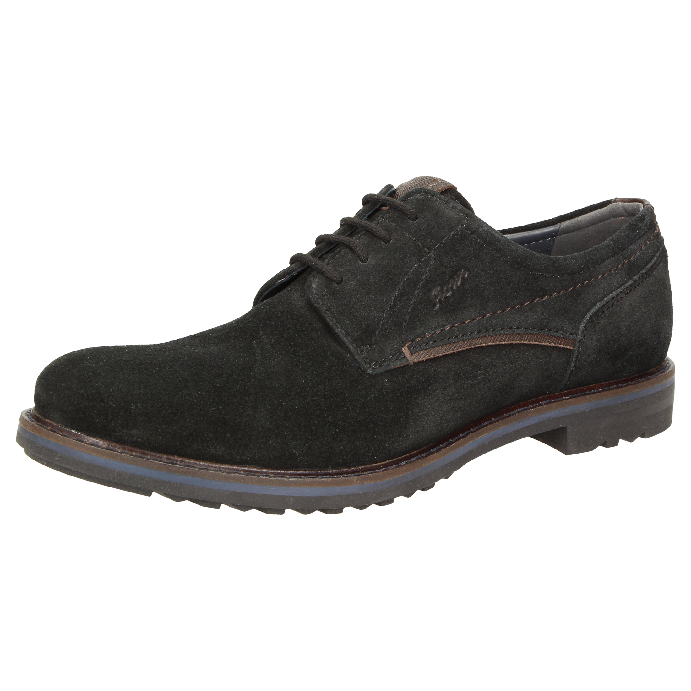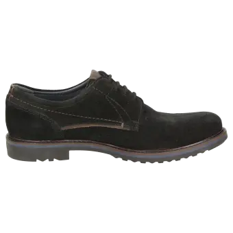 Sportieve heren-veterschoen van kalfssuède met een gecombineerde binnenvoering van textiel en leer. Met doorlopende, gevoerde en met kalfsleer beklede dekzool. De rubberzool met dwarsprofiel zorgt in herfst en winter voor uitstekende grip.
