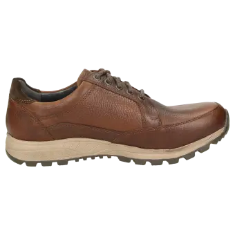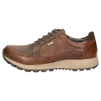 Sportieve casual-veterschoen van generfd rundleer, met waterdichte TEX-membraan en uitneembaar voetbed - en daarmee ook geschikt voor het dragen van de eigen inlegzool. De hooggetrokken hiel zorgt voor een optimale pasvorm en de 2-componenten-rubberzool zorgt voor comfort en demping bij het lopen.