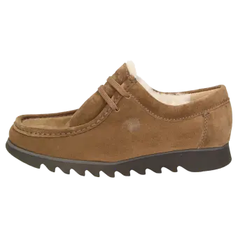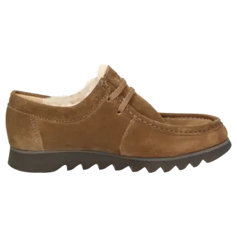 Dit sneaker-alternatief is gemaakt van fijn kalfssuède met heerlijk zachte lamsvachtvoering. Deze damesschoen overtuigt met extra luchtigheid, een comfortabele F-wijdte en bijzondere, modische accenten. Bovendien overtuigt deze mocassin met uitstekend comfort door de extra teenruimte en een met vilt bekleed wisselvoetbed dat de schoen bij uitstek geschikt maakt voor eigen inlegzolen. De lichte rubberzool geeft de sneaker een onnavolgbaar licht en aangenaam loopgevoel.
