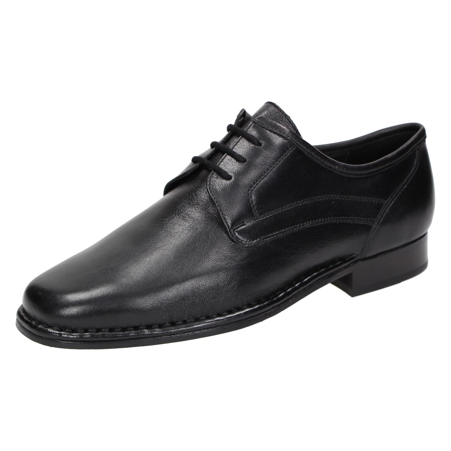 Klassieke heren-veterschoen van fluweelzacht lamsnappa in H-wijdte. Uitgevoerd met leren voering, leren brandzool en leren zool.