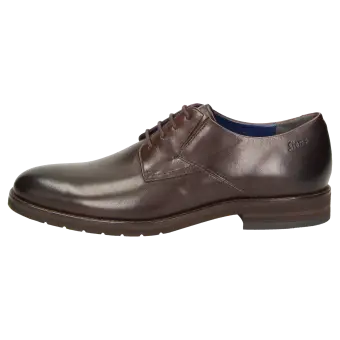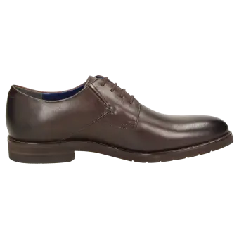 Een business-veterschoen van zijn meest comfortabele kant: ambachtelijk vervaardigd van fijn kalfsleer, met leren/textiele binnenvoering en zacht, met leer bekleed wisselvoetbed dat door een eigen inlegzool kan worden vervangen. De lichte rubberzool zorgt voor een aangenaam draaggevoel en dankzij de elastiek-inzet aan de vetersluiting past de schoen zich perfect aan de voet aan.