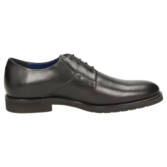 Een business-veterschoen van zijn meest comfortabele kant: ambachtelijk vervaardigd van fijn kalfsleer, met leren/textiele binnenvoering en zacht, met leer bekleed wisselvoetbed dat door een eigen inlegzool kan worden vervangen. De lichte rubberzool zorgt voor een aangenaam draaggevoel en dankzij de elastiek-inzet aan de vetersluiting past de schoen zich perfect aan de voet aan.