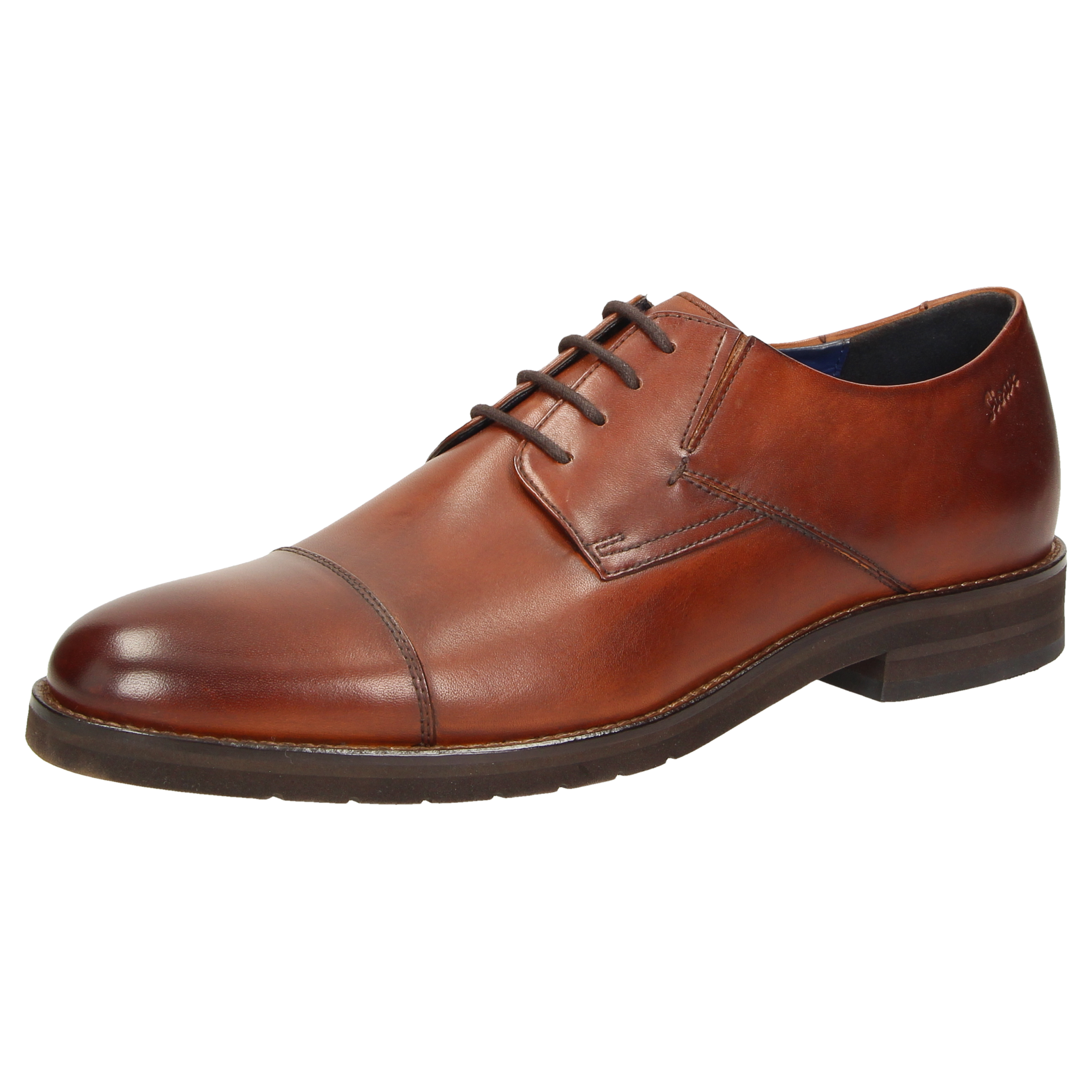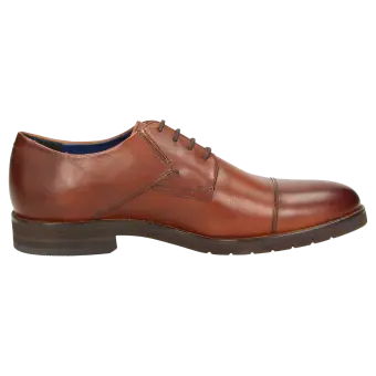 Een business-veterschoen in half-brogue-stijl van zijn meest comfortabele kant: ambachtelijk vervaardigd van fijn kalfsleer, met leren/textiele binnenvoering en zacht, met leer bekleed wisselvoetbed dat door een eigen inlegzool kan worden vervangen. De lichte rubberzool zorgt voor een aangenaam draaggevoel en dankzij de elastiek-inzet aan de vetersluiting past de schoen zich perfect aan de voet aan.