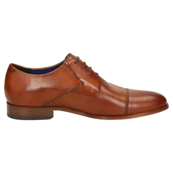 Een business-veterschoen in half-brogue-stijl van zijn meest comfortabele kant: ambachtelijk vervaardigd van fijn kalfsleer, met leren/textiele binnenvoering en zacht, met leer bekleed wisselvoetbed dat door een eigen inlegzool kan worden vervangen. Dankzij de elastische inzetten aan de vetersluiting sluit de schonen altijd perfect aan op voet.