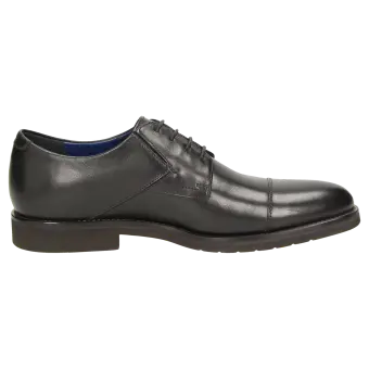 Een business-veterschoen in half-brogue-stijl van zijn meest comfortabele kant: ambachtelijk vervaardigd van fijn kalfsleer, met leren/textiele binnenvoering en zacht, met leer bekleed wisselvoetbed dat door een eigen inlegzool kan worden vervangen. De lichte rubberzool zorgt voor een aangenaam draaggevoel en dankzij de elastiek-inzet aan de vetersluiting past de schoen zich perfect aan de voet aan.
