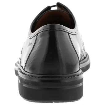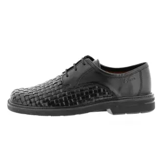 Klassieke heren-veterschoen van buffelleer, met gevlochten voorblad. De PU-zool en het uitneembare voetbed zorgen voor een aangenaam loopgevoel.