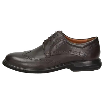 Extra lichte derby-veterschoen voor heren, met 'Boedapester' vleugelkap, van fluweelzacht lamsnappa, comfortabele extra-wijdte, met elastiek opzij aan de vetersluiting voor een perfecte pasvorm. Zacht gevoerd, met leer bekleed wisselvoetbed, eenvoudig te vervangen door de eigen inlegzool, met voering in een combinatie van leer en microvezel. Met zijn lichte rubberzool is deze schoen een perfecte begeleider voor de hele dag.