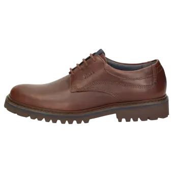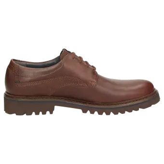 Sportieve heren-veterschoen van licht geolied kalfsleer, met doorlopende leren voering. De uitneembare, met leer beklede inlegzool kan door een eigen inlegzool vervangen worden. Dit model is extra comfortabel dankzij de lichte, geprofileerde rubberzool!
