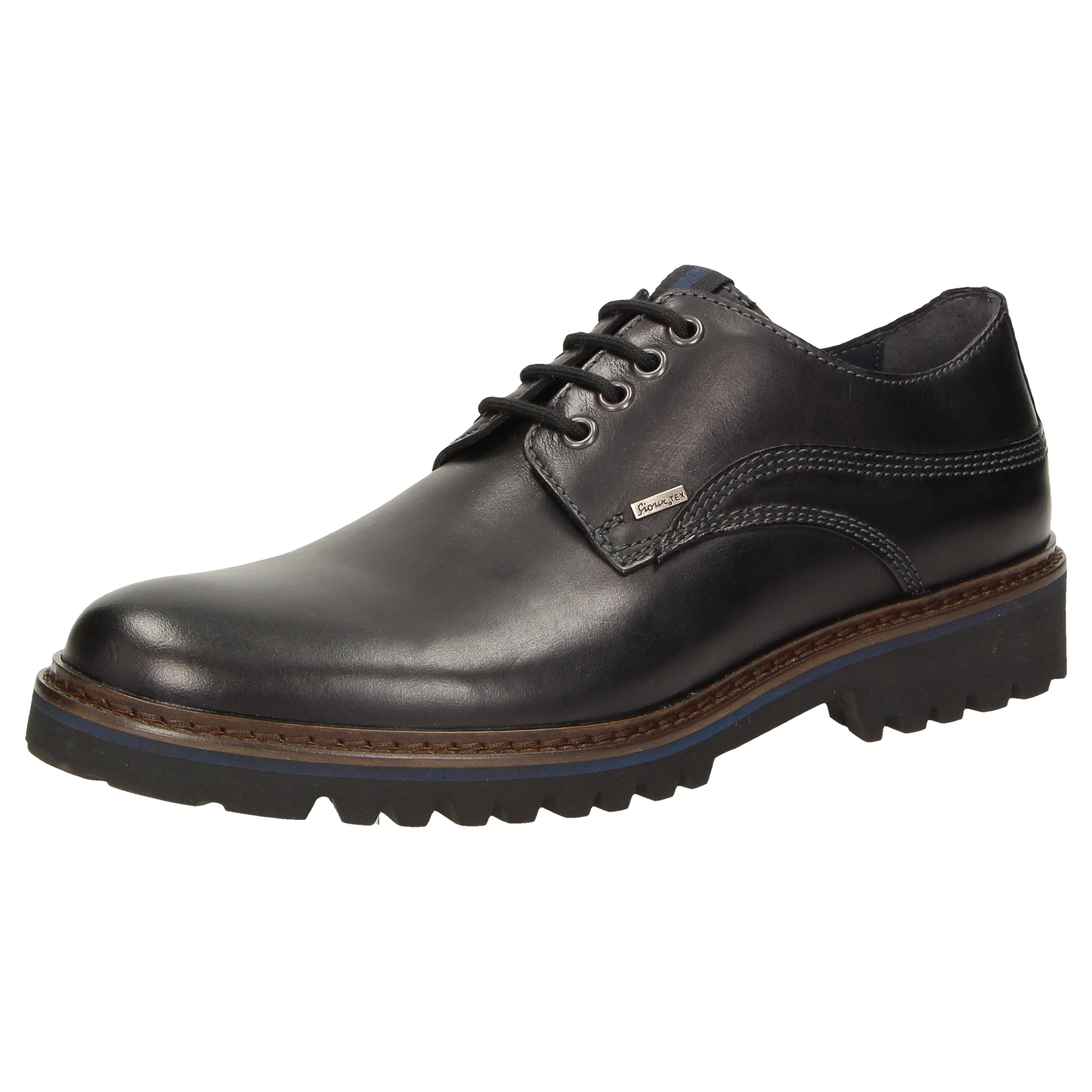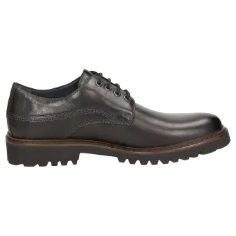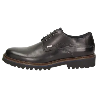 Sportieve heren-veterschoen van kalfsleer, met doorlopende leren voering en waterdichte TEX-membraan. De uitneembare, met leer beklede inlegzool kan door een eigen inlegzool vervangen worden. Dit model is extra comfortabel dankzij de lichte, geprofileerde rubberzool!