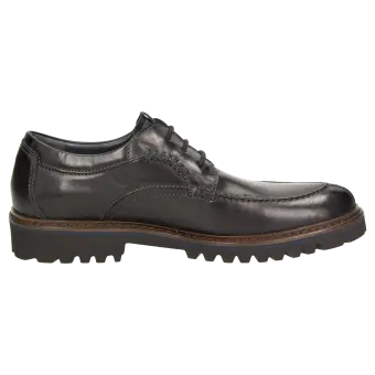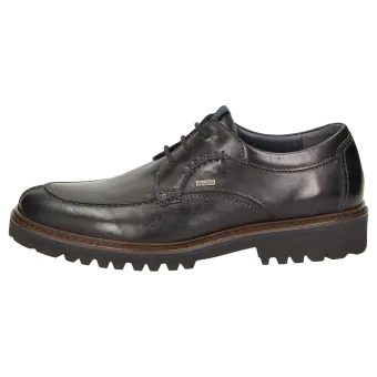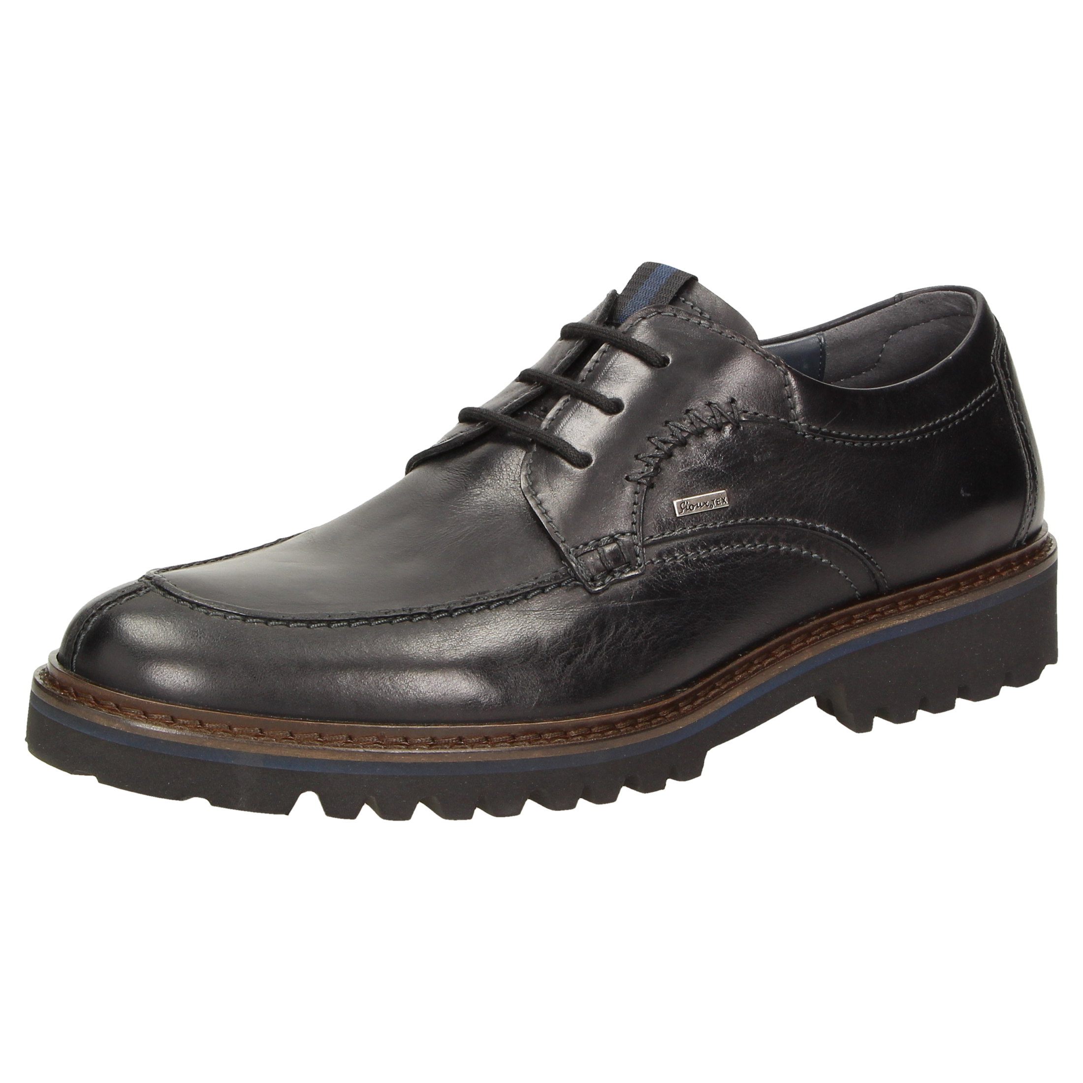 Sportieve heren-veterschoen van kalfsleer, met doorlopende leren voering en waterdichte TEX-membraan. De uitneembare, met leer beklede inlegzool kan door een eigen inlegzool vervangen worden. Dit model is extra comfortabel dankzij de lichte, geprofileerde rubberzool!