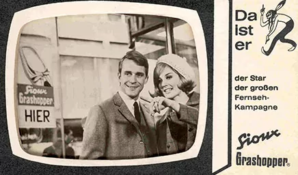 De eerste televisiespot met de originele ‚Grashopper‘ wordt uitgezonden. Sioux is de eerste schoenenfabrikant die gebruik maakt van dit moderne medium. De spot werd gedraaid met de firma Inselfilm uit München. De leiding was in handen van regisseur en cameraman Michael Ballhaus.