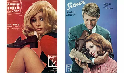 De antislipnoppen veroveren de boulevards: Sioux ‚Intarsia‘, de elegante straatmocassin. Als eerste onderneming produceert Sioux een geperforeerde leren zool met rubbernoppen. Daarmee is dit een Duitse uitvinding – en geen Italiaanse, zoals veelal bij vergissing wordt beweerd.
