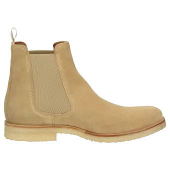 Heren-Chelsea-bootie uit de serie APOLLO van Sioux, gemakkelijke G-wijdte, geolied kalfssuède. Modisch-markant met echte crêpezool van natuurlijke caoutchouc en opgelegde leerrand. Het elastiek aan beide zijden is karakteristiek voor een Chelsea en garandeert niet alleen een goede pasvorm, maar ook gemak bij het aantrekken. Met zacht gevoerd leren voetbed en leren voering. Exclusief in kleine serie gemaakt model!