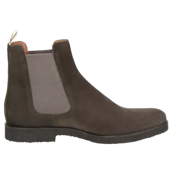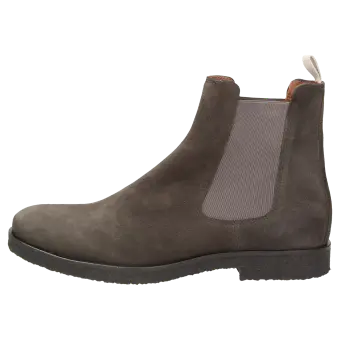 Heren-Chelsea-bootie uit de serie APOLLO van Sioux, gemakkelijke G-wijdte, van fijn kalfssuède. Modisch-markant met echte crêpezool van natuurlijke caoutchouc en opgelegde leerrand. Het elastiek aan beide zijden is karakteristiek voor een Chelsea en garandeert niet alleen een goede pasvorm, maar ook gemak bij het aantrekken. Met zacht gevoerd leren voetbed en leren voering. Exclusief in kleine serie gemaakt model!