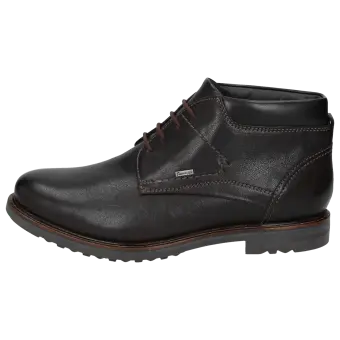 Sportief-klassieke herenbootie in modische optiek met markante, geprofileerde rubberen loopzool, in gemakkelijke H-wijdte. Waterdichte tex-membraan, warme voering en wisselvoetbed ronden de binnenuitvoering af.