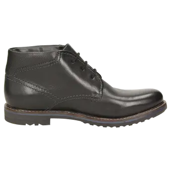 Een sportieve metgezel in comfortabele H-wijdte en lichte textielvoering, voor de hele dag: heren-veterbootie van generfd kalfsleer, met los wisselvoetbed - ook geschikt voor eigen inlegzolen. De geprofileerde rubberzool zorgt voor een perfect loopgevoel! Perfect voor iedereen die waarde hecht aan comfort!