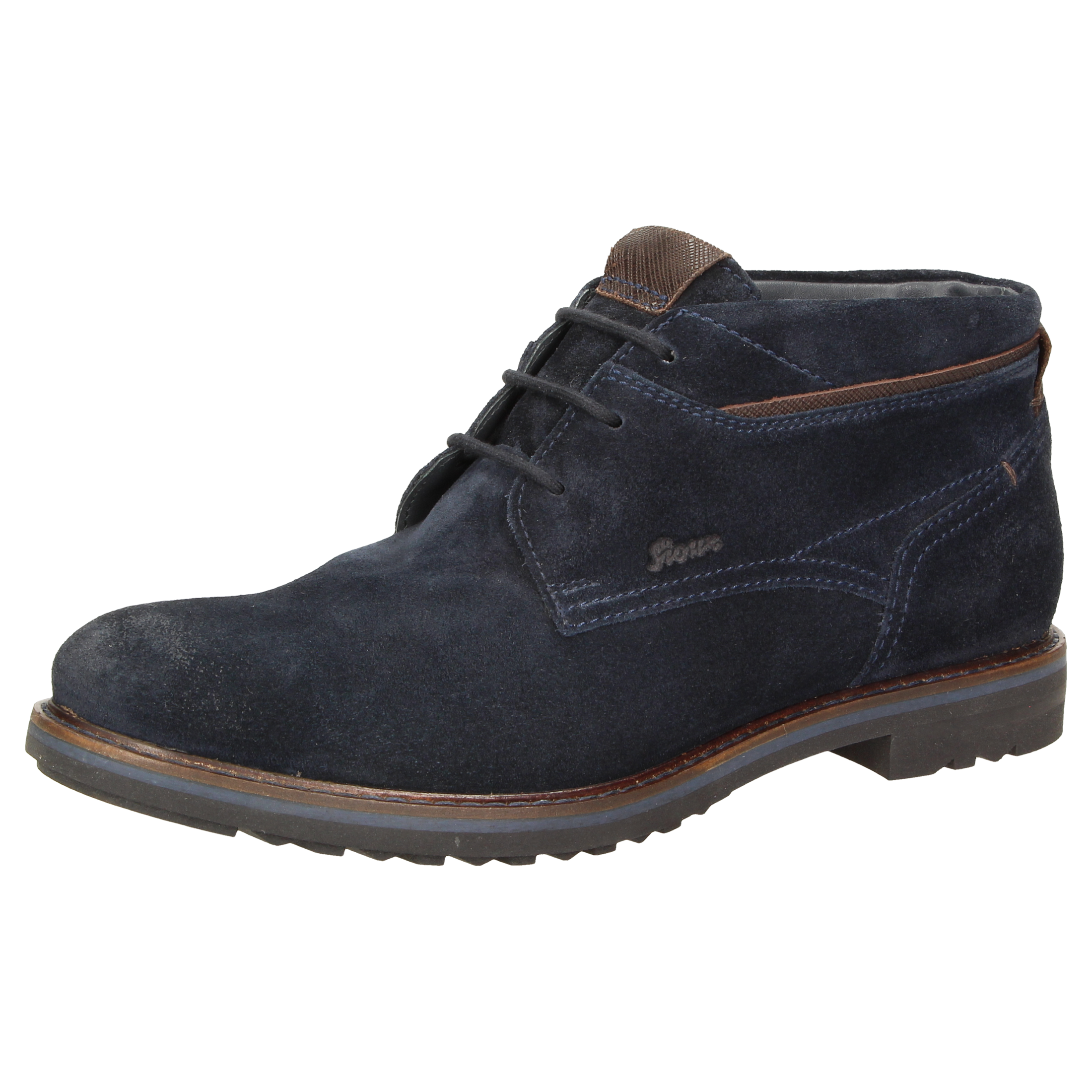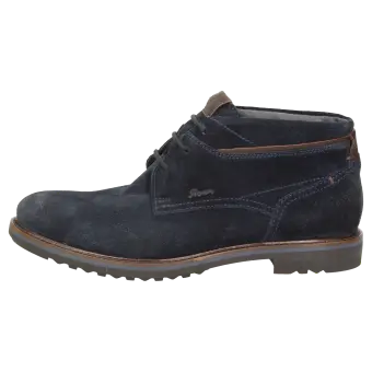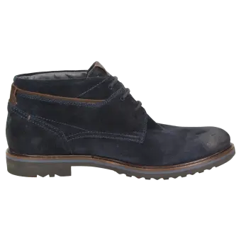 Sportieve heren-veterbootie van kalfssuède, met een fijne textiele binnenvoering. Met doorlopende, gevoerde en met kalfsleer beklede dekzool. De rubberzool met dwarsprofiel zorgt in herfst en winter voor uitstekende grip.