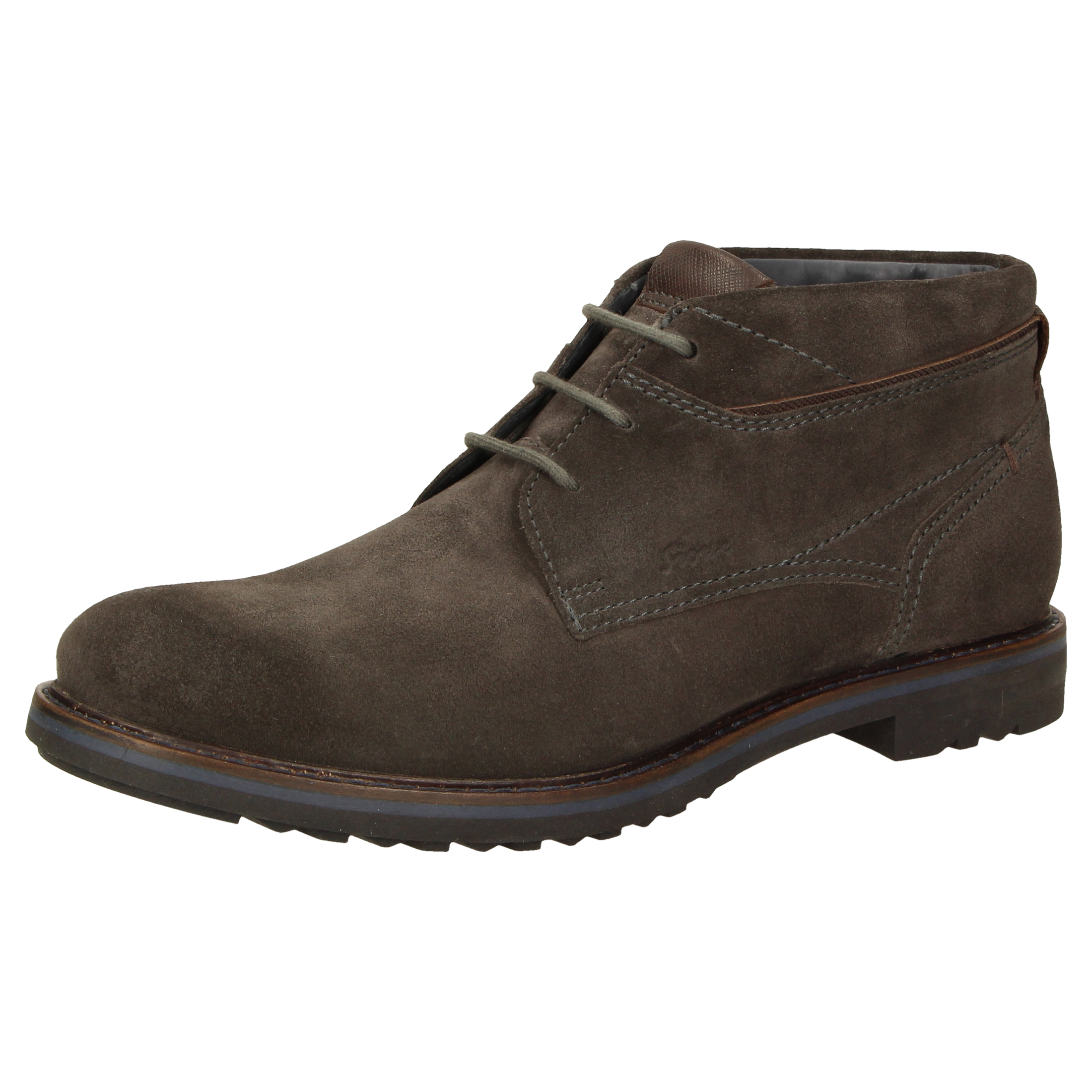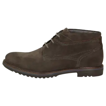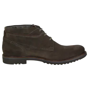 Sportieve heren-veterbootie van kalfssuède, met een fijne textiele binnenvoering. Met doorlopende, gevoerde en met kalfsleer beklede dekzool. De rubberzool met dwarsprofiel zorgt in herfst en winter voor uitstekende grip.