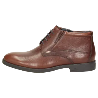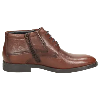 Heren-veterbootie met een handige ritssluiting in een optisch slanke, modische leestvorm met toch een gemakkelijke meerwijdte 'H'. Gemaakt van zacht kalfsleer met een binnenvoering van textiel, waterdichte TEX-membraan en zacht gevoerd, met leer bekleed wisselvoetbed, eenvoudig te vervangen door de eigen inlegzool. Het bijzondere van deze schoen is de zeer zachte en verende rubberzool voor een perfect loopgevoel: Natural Move System. Dit model onderscheidt zich door bijzonder comfort, unieke flexibiliteit en buitengewone zachtheid.