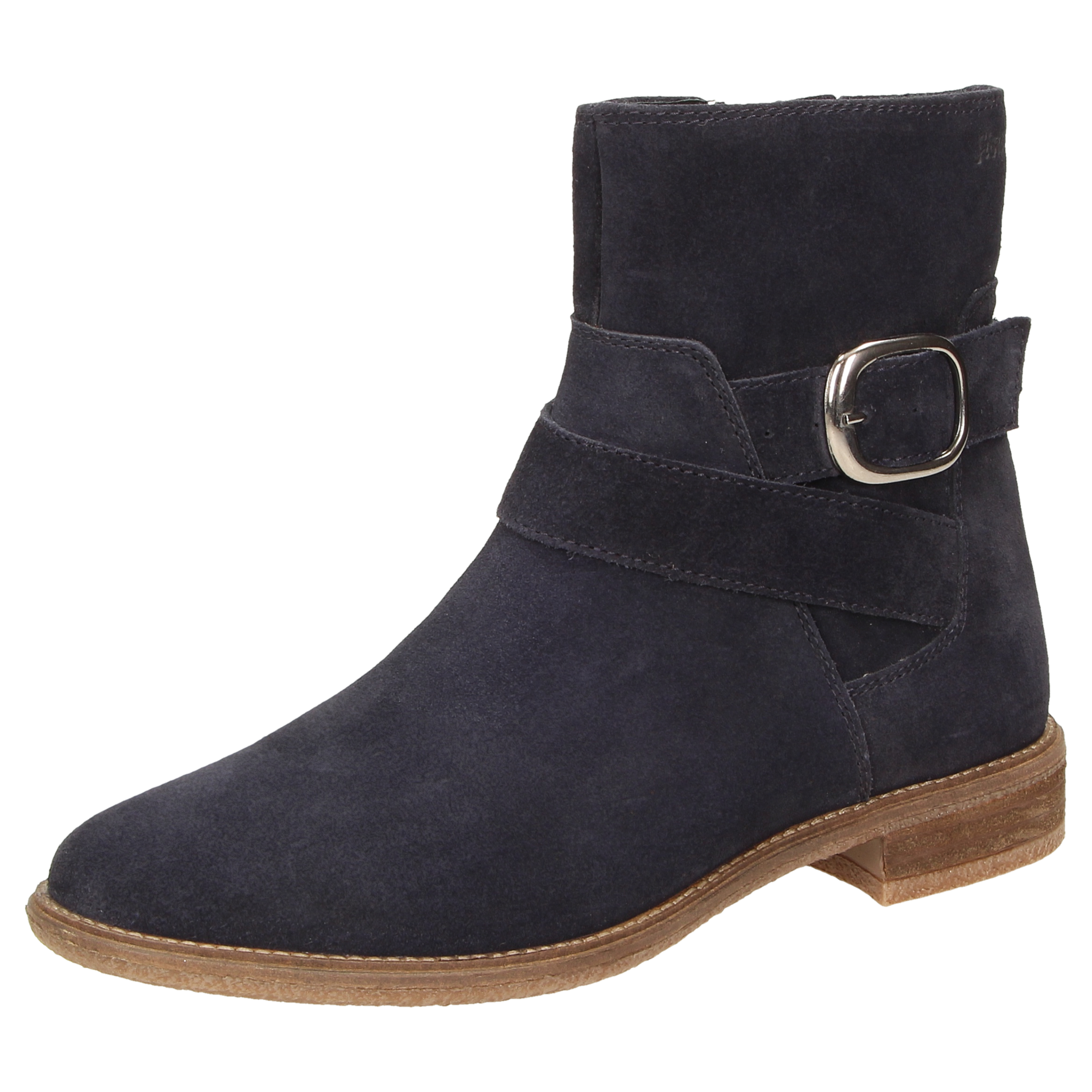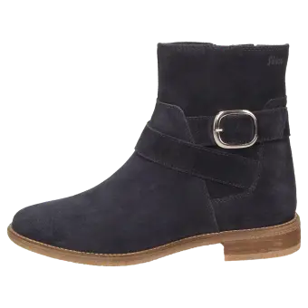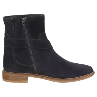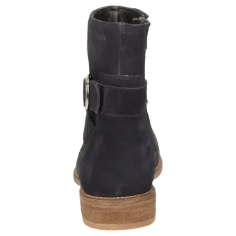 Sportief laarsje van zacht kalfssuède, met binnenrits voor gemakkelijk aantrekken, met modische bandage en sluitgesp. Binnenvoering van luchtdoorlatend microvezel en doorlopende, zacht gevoerde leren dekzool. Met zijn lichte rubberzool is deze bootie perfect voor de herfst en de winter.