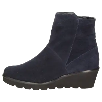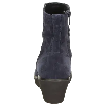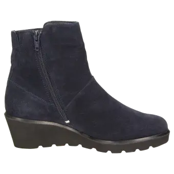 Sportief laarsje met rits, van fijn kalfssuède, met zachte rubberzool en sleehak van 45 mm. Gevoerd met microvezel en ingelegde, leren dekzool die kan worden vervangen door de eigen dekzool. Met zijn gemakkelijke G-wijdte en de lichte rubberzool is deze bootie de perfecte metgezel.