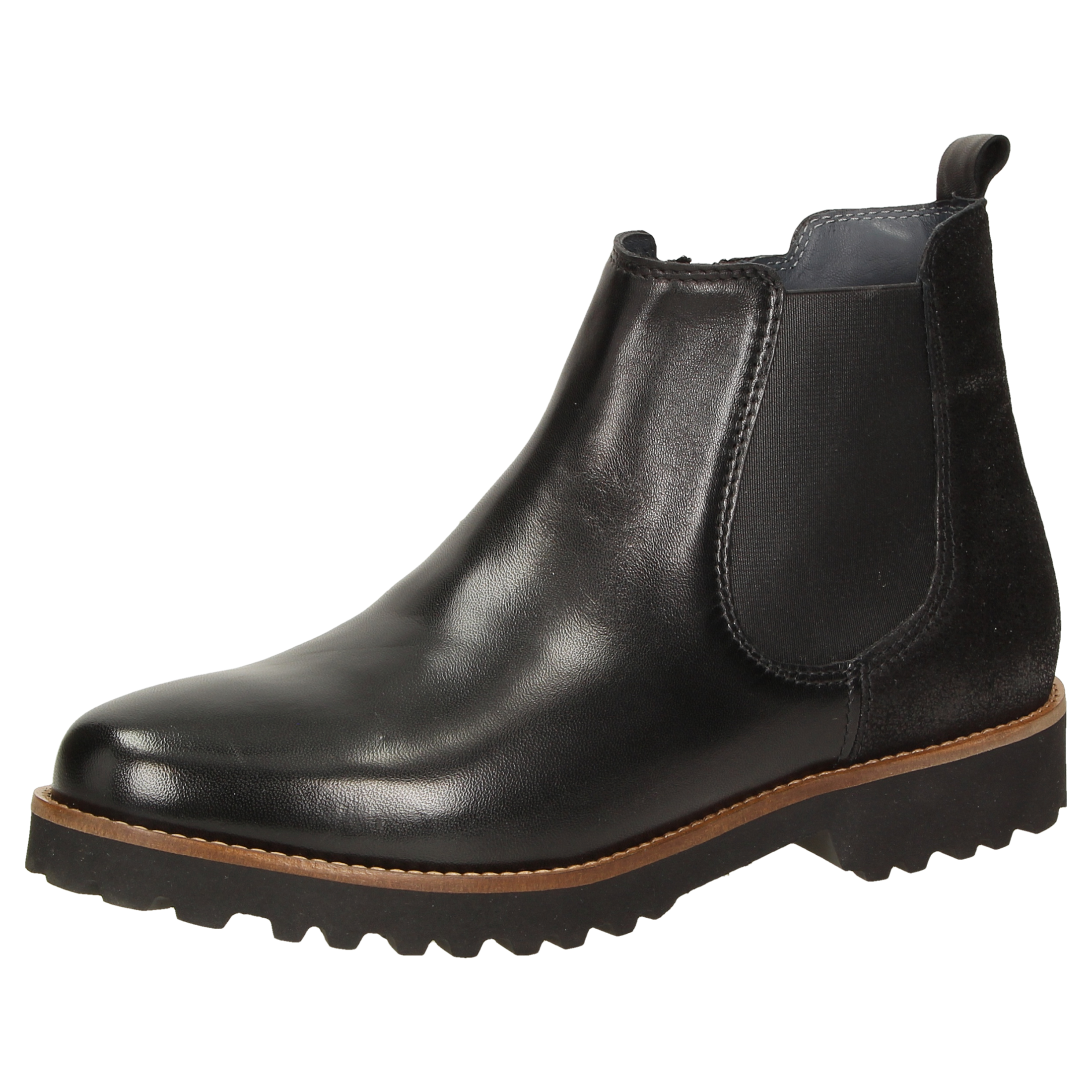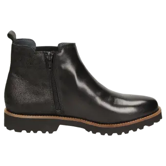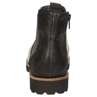 Dames Chelsea-bootie van Sioux, in H-wijdte, met elastiek opzij, rits en lus aan de hiel. Vervaardigd van zeer zacht lamsnappa en lamssuède, met perlato-finish aan de hiel. Gevoerd met kalfsleer en een elastische textielvoering onder de voorvoet. Geschikt voor hallux-valgus-voeten! Uitneembaar, met kalfsleer beklede dekzool met zachte demping, geschikt voor eigen inlegzolen. Geprofileerde, herfstachtig ogende lichte rubberzool met markante leerrand.