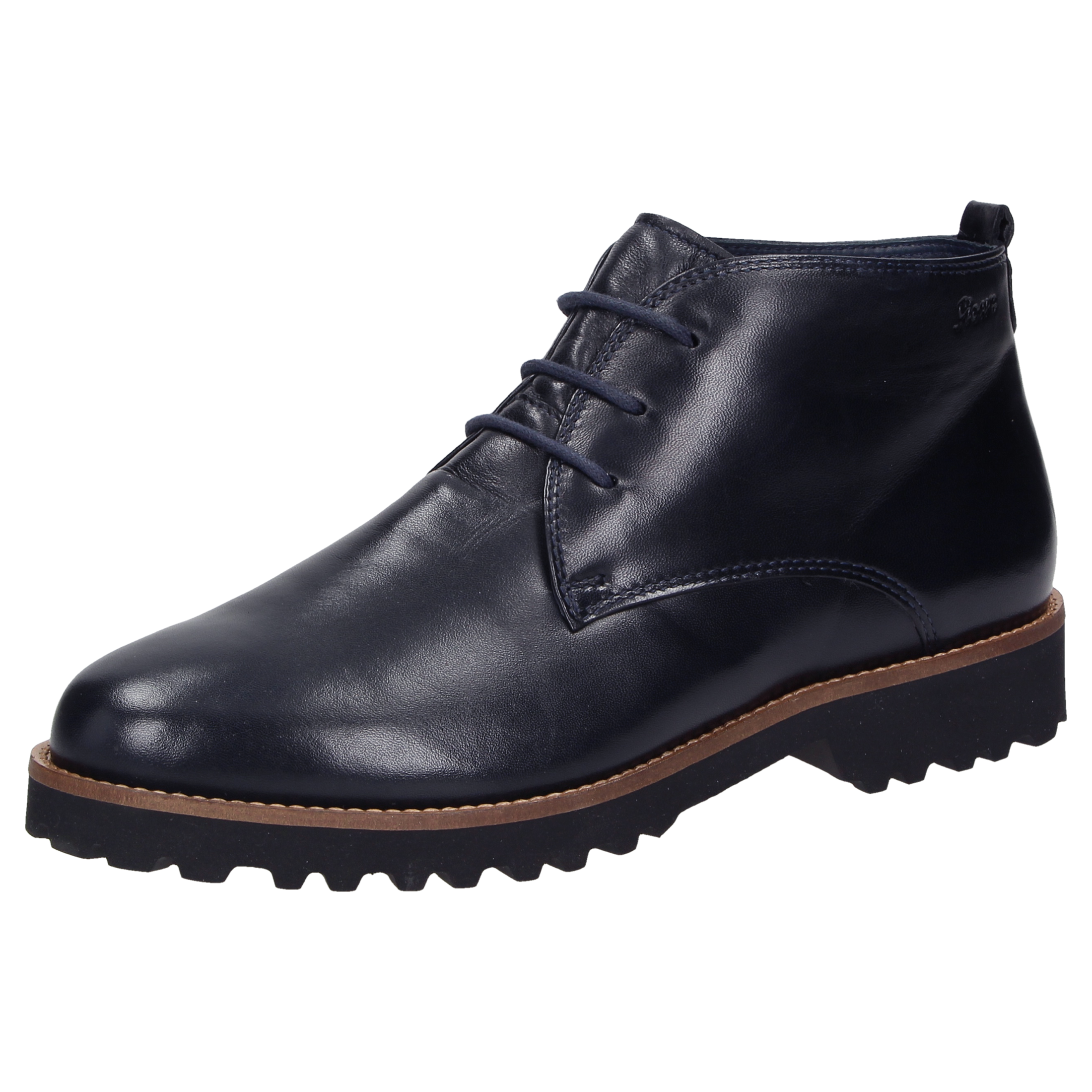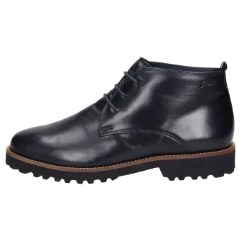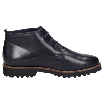 Dames-veterlaarsje met lus aan de hiel, in H-wijdte. Vervaardigd van zacht lamsnappa en gevoerd met kalfsleer en een stretchvoering onder de voorvoet. Geschikt voor hallux-valgus-voeten! Uitneembaar, met kalfsleer beklede dekzool met zachte demping, geschikt voor eigen inlegzolen. Geprofileerde, herfstachtig ogende lichte rubberzool met markante leerrand.
