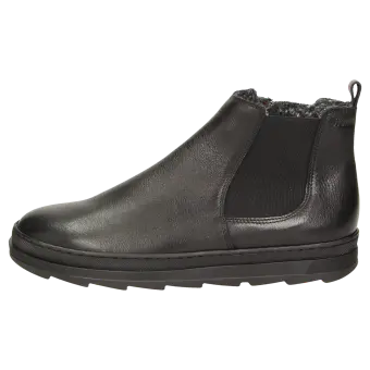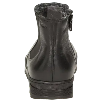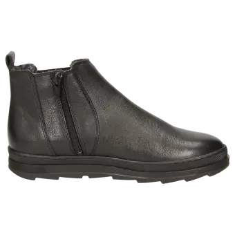 Platte damesbootie van Sioux, in G-wijdte, met elastiek en rits opzij en lus aan de hiel. Gemaakt van sportief kalfsleer en gevoerd met warme teddy. Uitneembare, met vilt beklede dekzool met zachte demping - ook geschikt voor de eigen inlegzool. De stevige, geprofileerde rubberzool rondt deze schoen optimaal af voor de winter.