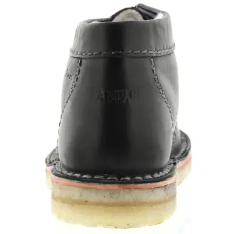 Deze zwarte winterschoen van suède is uitgerust met een heerlijk warme wolvoering. Hij heeft een lichte crêpezool en lichte siernaden. Bijzonder detail: de bedrukte veters.