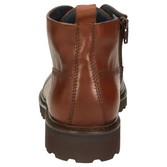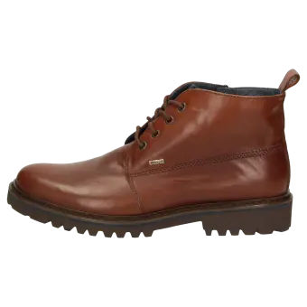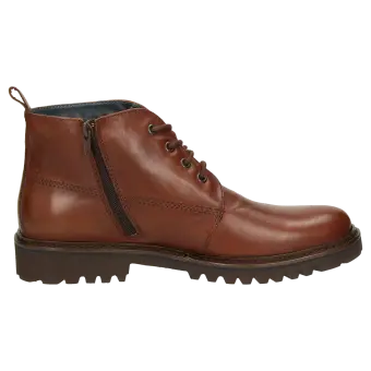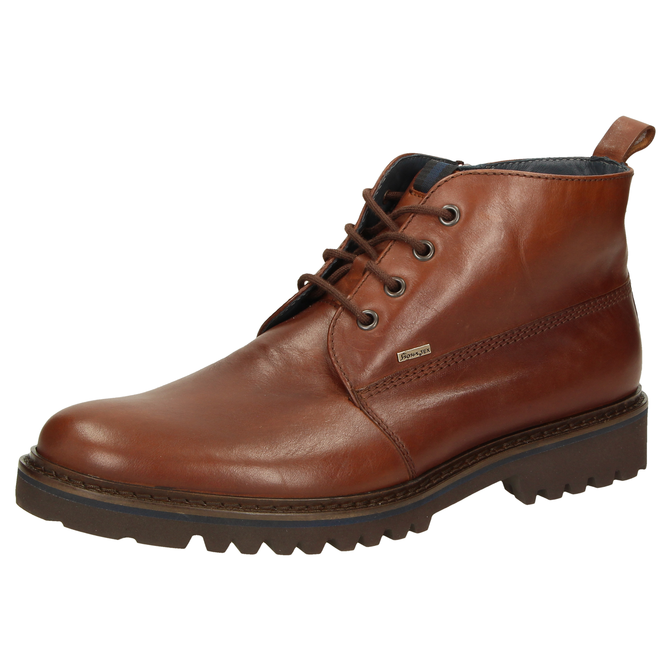 Klassieke veterbootie van kalfsleer, met een waterdichte TEX-membraan, met een extra ritssluiting voor gemakkelijk aantrekken. De uitneembare, met leer beklede inlegzool kan door een eigen inlegzool vervangen worden. Dankzij de textielvoering kan men dit model een groot deel van het jaar dragen. Dit model is extra comfortabel dankzij de lichte, geprofileerde rubberzool!