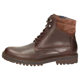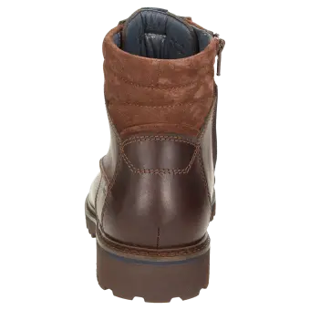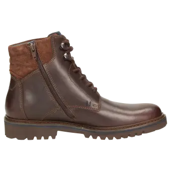 Sportieve veterbootie van licht geolied kalfsleer, met extra rits voor comfort bij het aantrekken. De uitneembare, met leer beklede inlegzool kan door een eigen inlegzool vervangen worden. Dankzij de textielvoering kan men dit model een groot deel van het jaar dragen. Dit model is extra comfortabel dankzij de lichte, geprofileerde rubberzool!