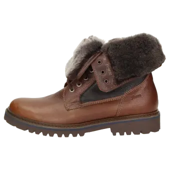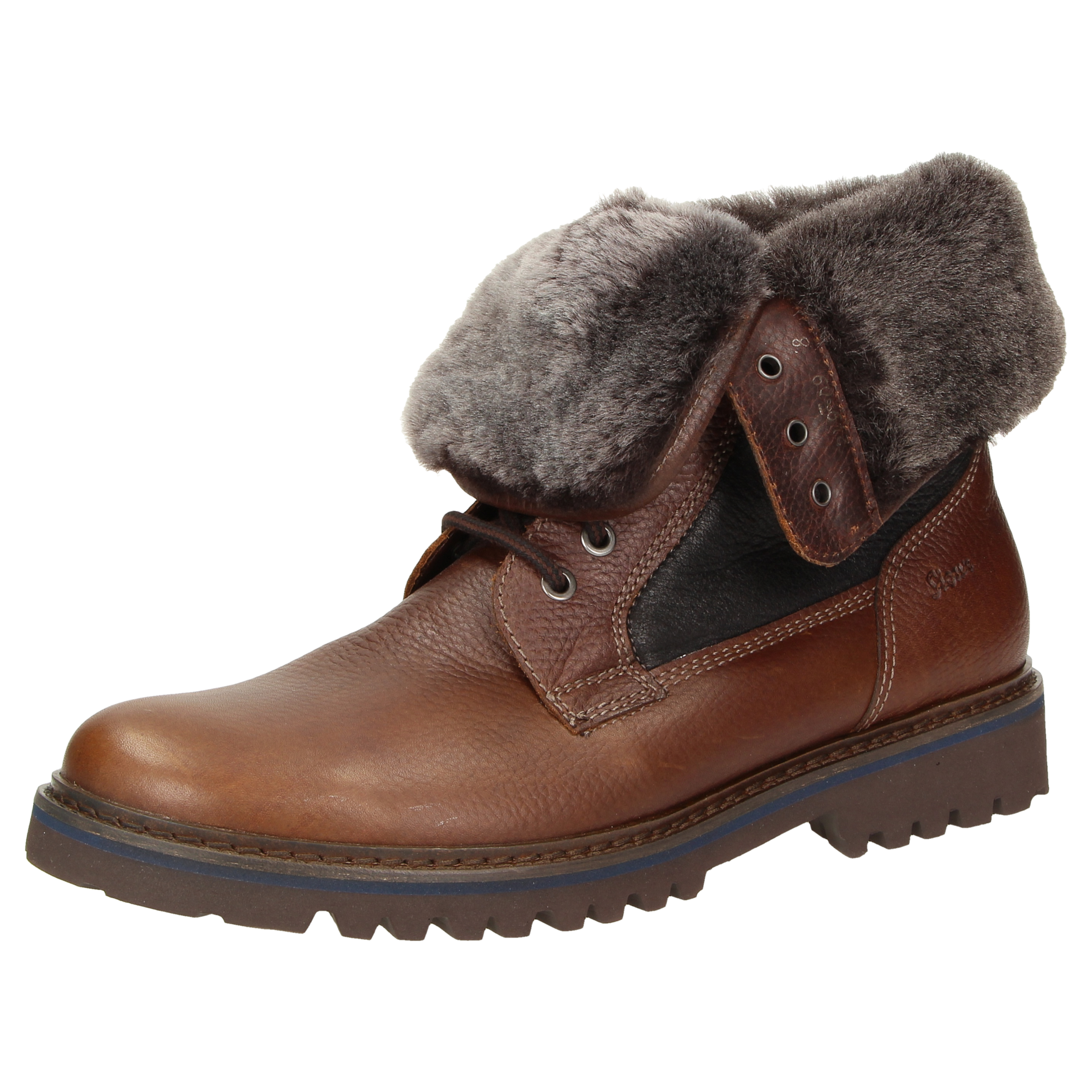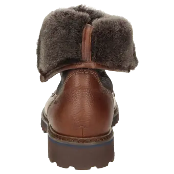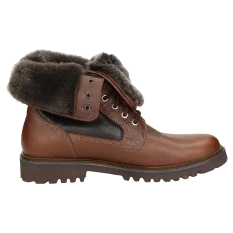 Winterse veterlaars van generfd rundleer, met tong en schacht van lamsvacht en warme teddyvoering onder de voorvoet. De uitneembare, met vilt beklede inlegzool kan door een eigen inlegzool vervangen worden. Dit model is extra comfortabel dankzij de lichte, geprofileerde rubberzool!